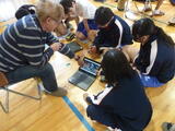 2年生は事前に、グループごとにたくさんの質問を考えたり、タブレットを使って調べ事をしたりして準備を進めてくれました。当日は、事前準備の成果を存分に発揮し、笑顔も交えながら訪問団の皆さんと楽しく交流していました。