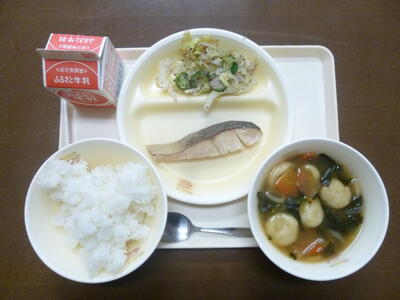 本日の献立では、これらをイメージして、「ごはん、鮭の塩焼き、ゆかり和え」となっています。