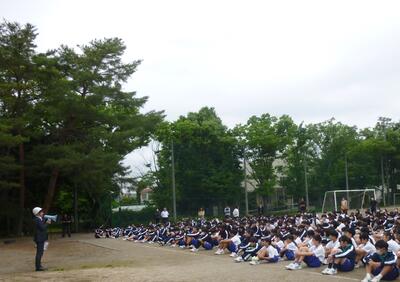 今年度1回目の避難訓練は、第2理科室の火災を想定して行われました。生徒たちは、避難経路の確認とともに、身の安全を確保しながら校庭に避難することができました。校長先生の講話で紹介された、「中学生地域防災支援事業(WSS)」に興味を抱いた生徒も多く、その後、各学年からWSSに申し込む様子が見られました。