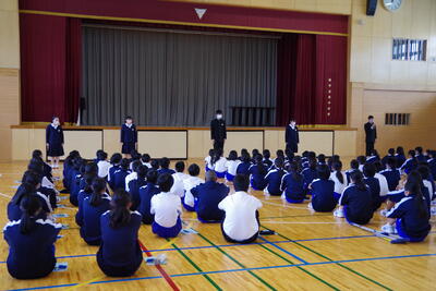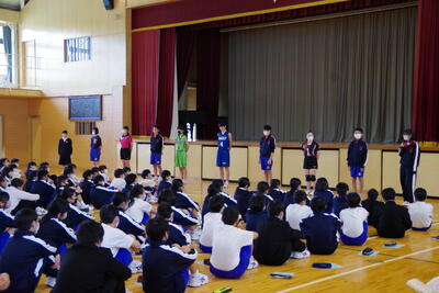 令和5年度学校・部活動紹介が行われました。 投稿: 東中 (2023/04/13) カテゴリー: 学校行事 4月12日に学校・部活動紹介が開催されました。生徒会本部役員や各委員会の委員長から活動の説明がありました。また、各部の部長から一年生に向けてそれぞれの活動内容、活動時間、および各部の魅力について伝えられました。