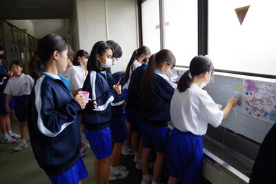 【6月2日掲載】歯みがき週間(5/30~6/20)の取組を実施中です。 投稿: 東中 (2023/06/02) カテゴリー: 学校行事 東中では5/30~6/20を歯と口の健康週間として様々な取組を行っています。 給食後の歯みがきも飛沫に気を付けて実施しています。 この機会に歯の大切さや歯みがきの大切さを改めて学んでほしいです。